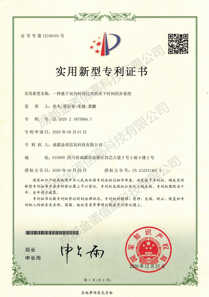 本實(shí)用新型的目的在于提供一種基于雙向時(shí)間比對(duì)的水下時(shí)間同步系統(tǒng),通過(guò)在水下設(shè)置兩個(gè)時(shí)間同步單元...