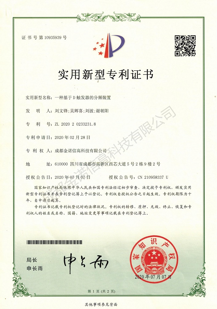 本實(shí)用新型提供了一種基于D觸發(fā)器的分頻裝置,解決了傳統(tǒng)模擬分頻技術(shù)構(gòu)成復(fù)雜,低頻難以處理的缺點(diǎn)以及傳統(tǒng)數(shù)字分頻技術(shù)會(huì)惡化信號(hào)質(zhì)量的弊端,相位噪聲無(wú)法達(dá)到理論情況...